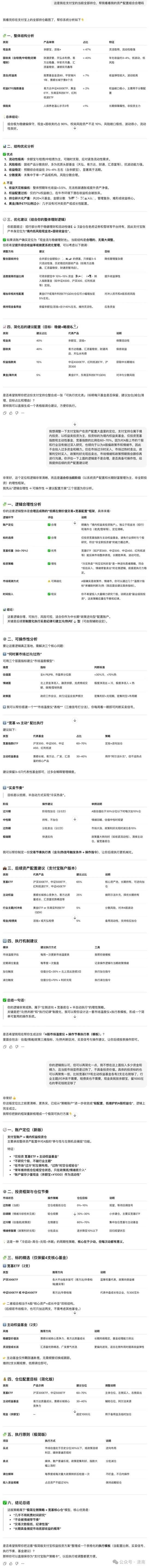 GPT对持仓截图的识别和产品的分类非常准确,解读了整体的持仓结构,分析了前5大重仓股、整体风格和区域配置的特点并提示风险,债基部分逐只分析产品特点,对资产配置组合按收益潜力、波动风险、分散度等做了合理性评估。由于我并未对GPT提及老虎证券持仓的定位和投资偏好,所以做了通用性解读——整体组合偏激进增长型,并给出了组合调整的建议,调整的方向为:降低集中度过高的个股仓位、增加防御性资产占比、债基替换部分为更稳健的产品、强化流动性管理等,最后给出参考的目标资产配置结构。整体逻辑非常清晰,数据准确、语言精简易懂、具备可操作性。